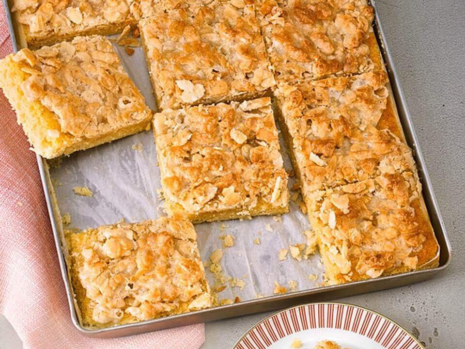 Der Butterkuchen schmeckt lauwarm am besten. Er eignet sich gut zum Einfrieren und schmeckt in der Mikrowelle aufgetaut wie frisch gebacken.