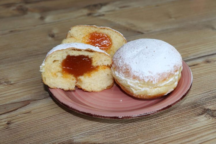 Sind alle gebacken, mit der der Marmeladentülle die Marillenkonfitüre einspritzen und bezuckern. Nach 30 Minuten genießen!