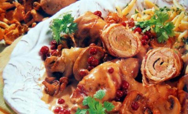 Nach Ablauf der Zeit den Hackbraten in Rollen schneiden, diese in die zuvor zubereitete Eiermischung geben und mit Semmelbröseln umhüllen.