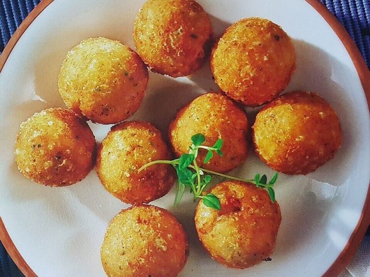 Danach aus der Käsemischung Bällchen formen, in Semmelbröseln wälzen und in heißem Öl schwimmend ausbacken.